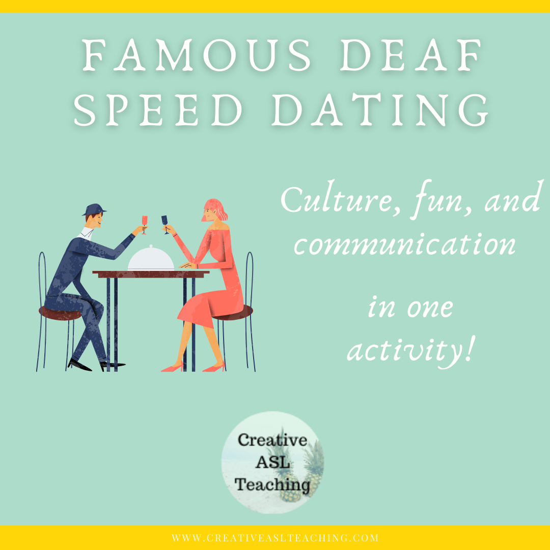 I have always done speed dating in the ASL classroom for getting to know you, introductions, describing yourself, and telling about your vacations. But as I was working in my classroom a while back a thought occurred to me…Why am I not speed dating with famous Deaf people? So I set out to make this activity incredibly fun because I think it is important for students to know about Deaf people, who they are, and the contributions that have made to society.