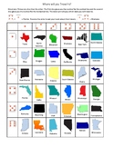 Dice Game, StatesDirections: Throw one dice then the other. The first dice gives you the number for the vertical line and the second dice gives you the number for the horizontal line. The total sum tells you which state you will travel to. Use this game to review states or to create sentences about travel and ask questions to others about their travel. Great for past tense or future tense speaking activities.